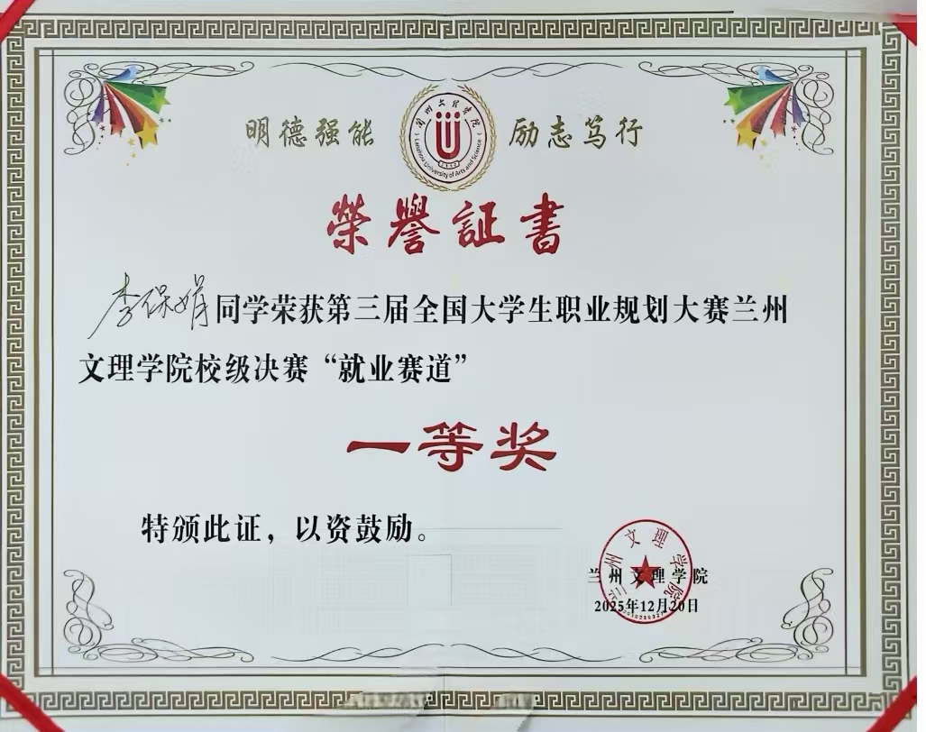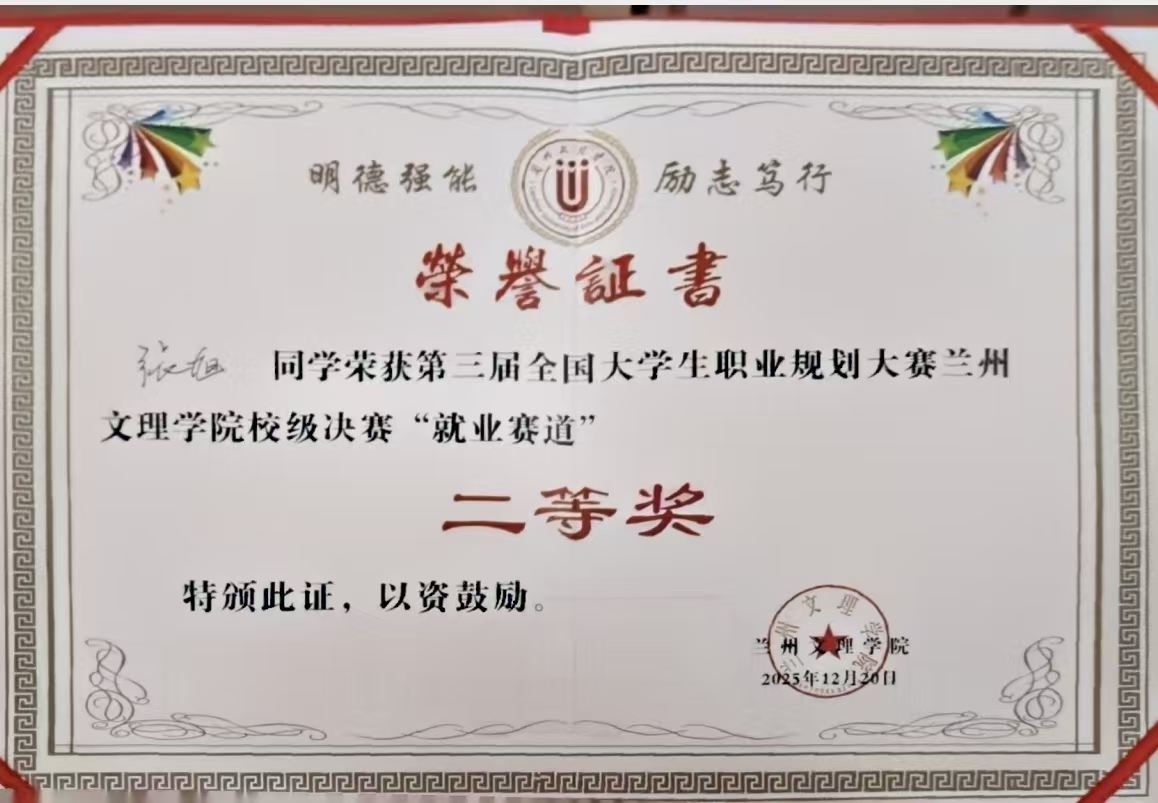 大赛以“规划未来 成就梦想”为主题,吸引全校各院系学生踊跃参与。艺术职业学院2023级表演班李保娟同学,聚焦秦腔表演专业赛道,凭借对传统戏曲行业发展趋势的精准研判、个人职业成长路径的清晰规划,在就业组角逐中脱颖而出,荣获一等奖;2022级表演班张旭同学立足自身专业优势,结合舞台艺术行业就业需求,构建了兼具可行性与创新性的职业发展方案,荣获就业组二等奖。